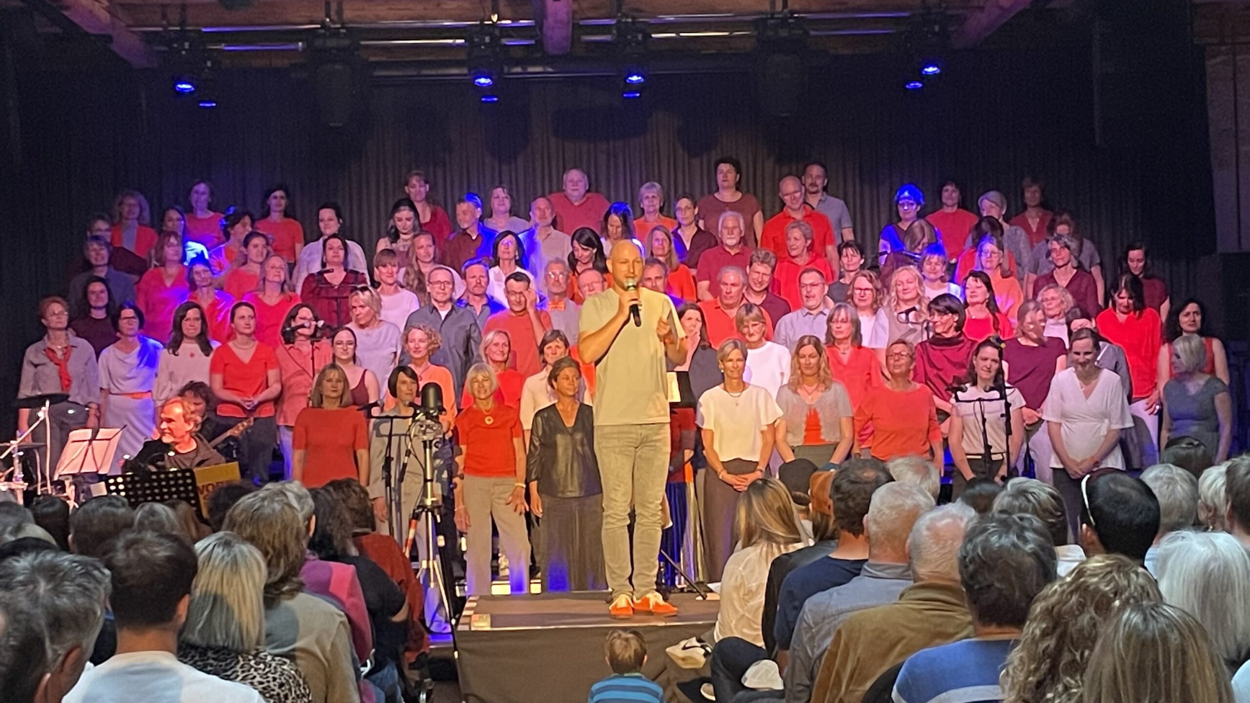 Menschen aus Bad Reichenhall und der ganzen Region haben sich unter seiner Ägide zusammengefunden, um ihrer Leidenschaft fürs Singen zu frönen, aber auch, um anderen damit eine Freude zu bereiten. Und das ist dem großen Chor bei seinen bisherigen Darbietungen auch im Magazin3 grandios gelungen. Mit ebenso gefühlvollen wie dynamischen Songs brachte der Chor zuletzt mit einem Benefizkonzert zugunsten unseres Sternenzeltvereins den Saal zum Beben. Abwechslungsreiche und mitsingtaugliche Lieder, die auch das Publikum bestens kennt, sind der Garant für furiose Auftritte, und so springt der Funke der Begeisterung für den Chorgesang von den mehr als hundert Mitwirkenden direkt und sofort auf die Gäste über. Ob auf Englisch („We are the World“, „Leave a Light on“) oder Deutsch („Du entschuldige, i kenn di“, „Zu spät“), ob Oldie („Can’t buy me Love“) oder brandneu („Ohne Schuah“) – bei diesen musikalischen Leckerbissen ist für jeden Geschmack und für jedes Alter etwas dabei.